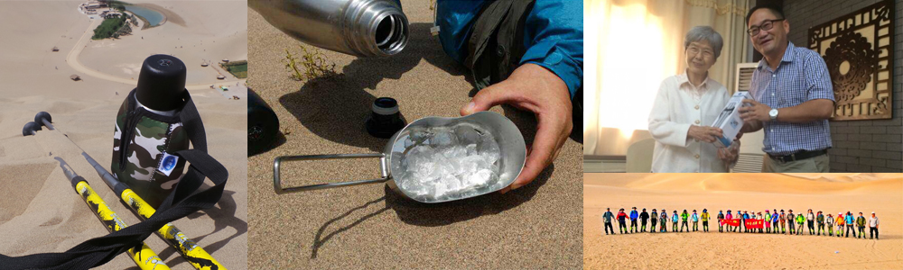 历尽艰险的两天穿越之后,我们终于迎来了登上鸣沙山巅的那一刻,眺望月牙泉的神奇,我们豪情万丈,心旷神怡。此时的我们,经过了两天的磨砺而略显疲惫,随意间我取出携带的一件法宝——思乐得军用水壶,打开盖子,经过两天炎炎酷日炙烤之后,水壶依然能倒出晶莹剔透的冰块,同伴们惊喜若狂,蜂拥而上,当我反应过来时,冰块已被一抢而空,但是这份清凉却已然留于心扉!